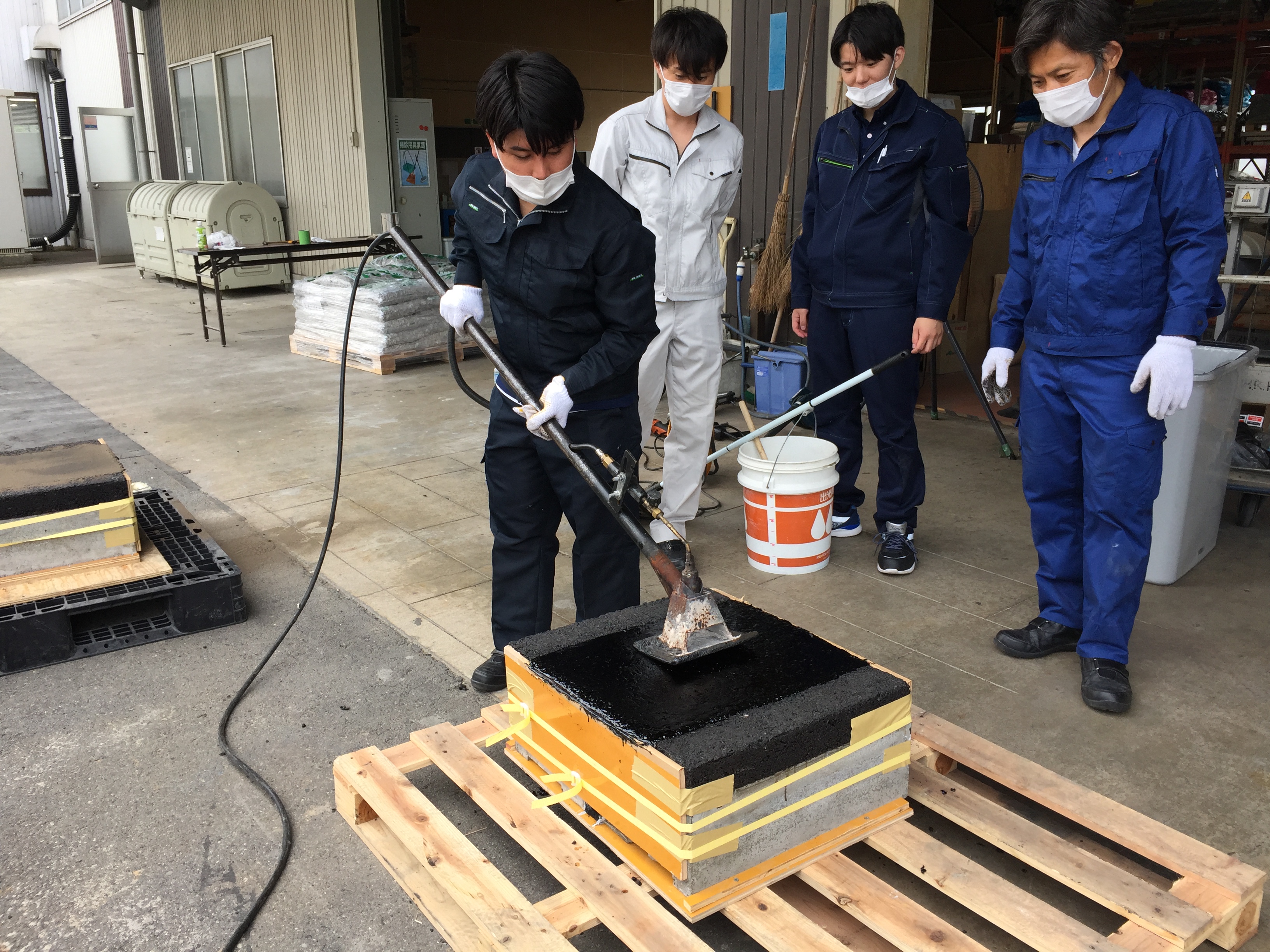 - バーナーコテによる路面の平滑化・刷り込み作業